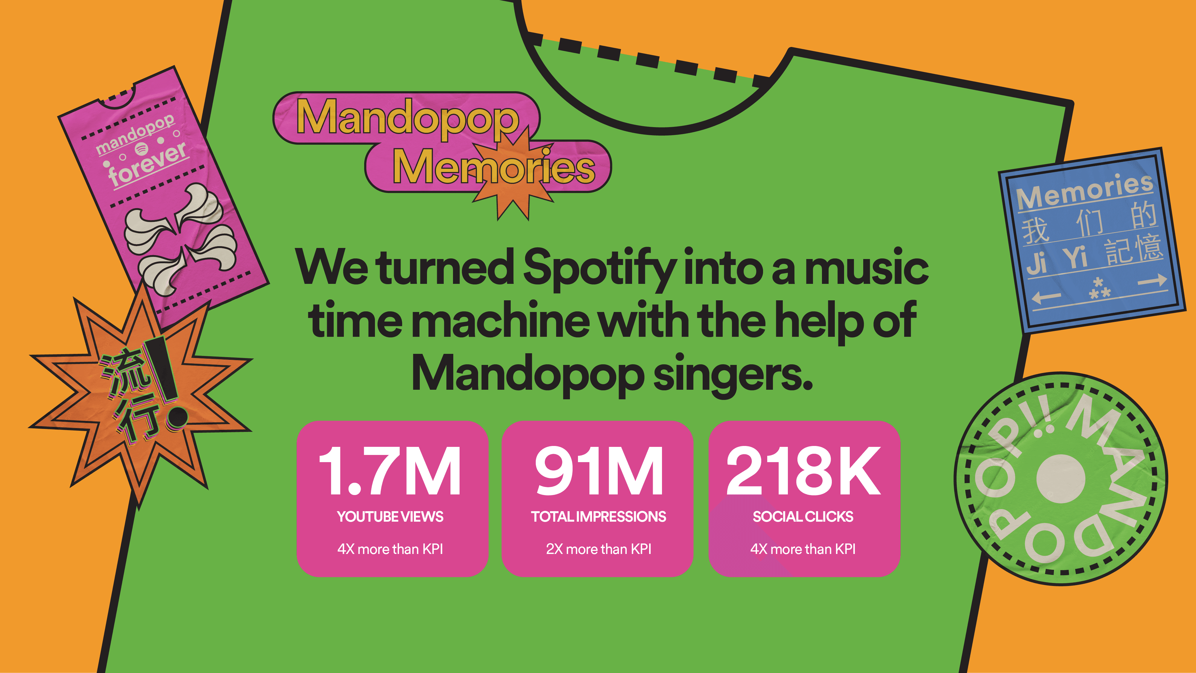 To celebrate 10 years of Spotify in Taiwan, we started the #MyMandopopMemory challenge that transported listeners back to the good ol’ days while helping them create new memories to look back to. The best part? Everyone’s favourite Mandopop artists were in on the reminiscing too!